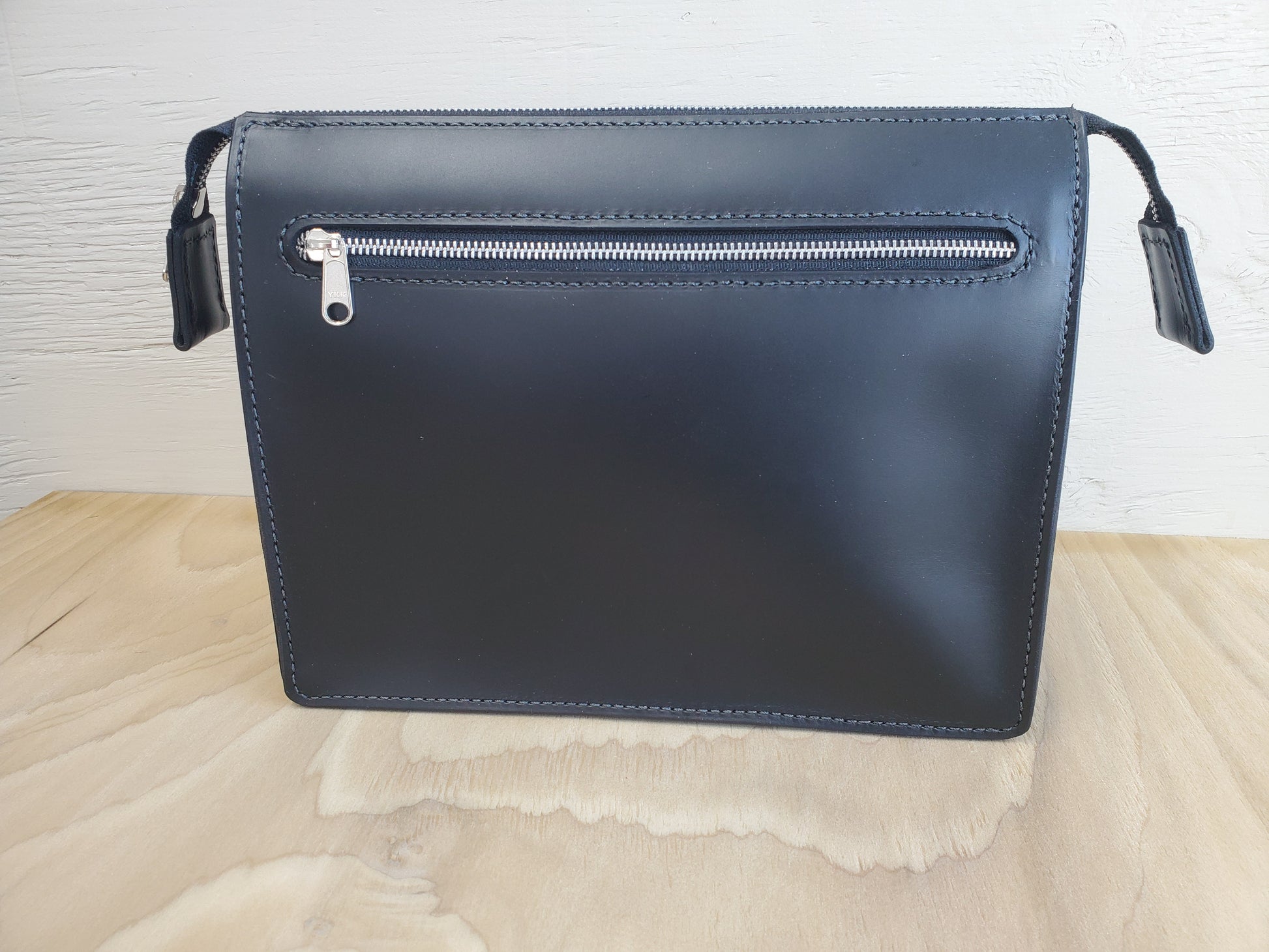 This zippered bible bag is made of beautiful, supple, high quality oil-tanned leather in 4/5 oz throughout. Comes with 1 or 2 main compartment(s) with inside pocket, an outside zippered pocket, and outside open pocket. Regular is 11 x 7.5 carrying capacity, Large is 12 x 8".